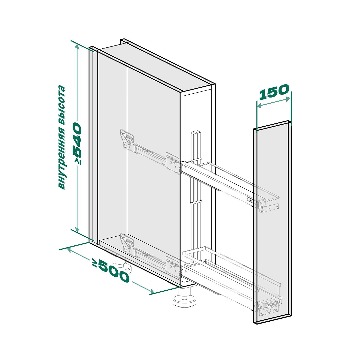 Бутылочница для противней №15 H 542 фасад 150 мм 3D