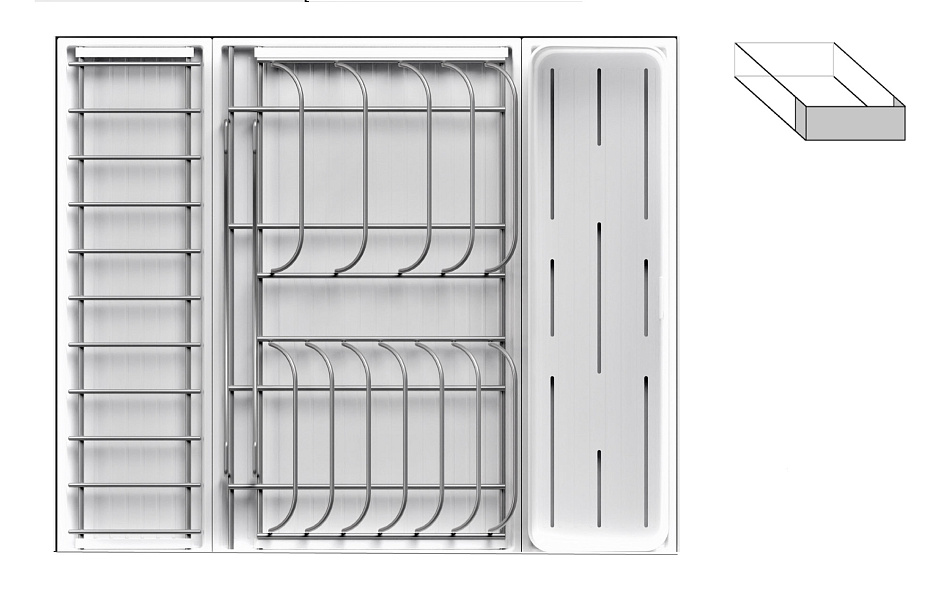 Модель — 1 большой модуль для посуды + 1 малый модуль с решеткой + модуль для столовых приборов
