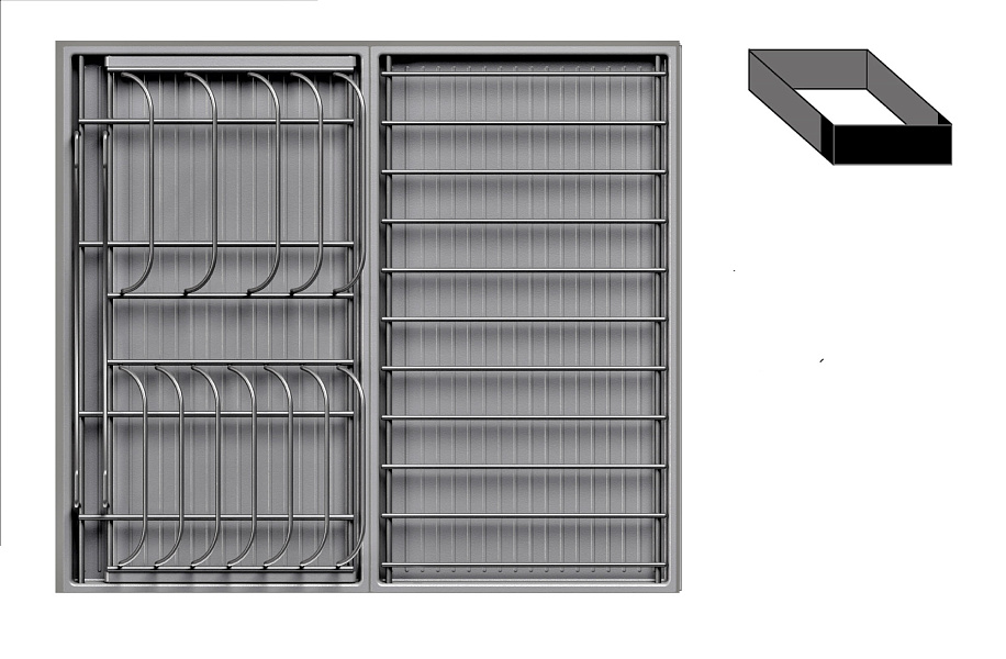 - 1 большой модуль для посуды + 1 малый модуль с решеткой + модуль для столовых приборов