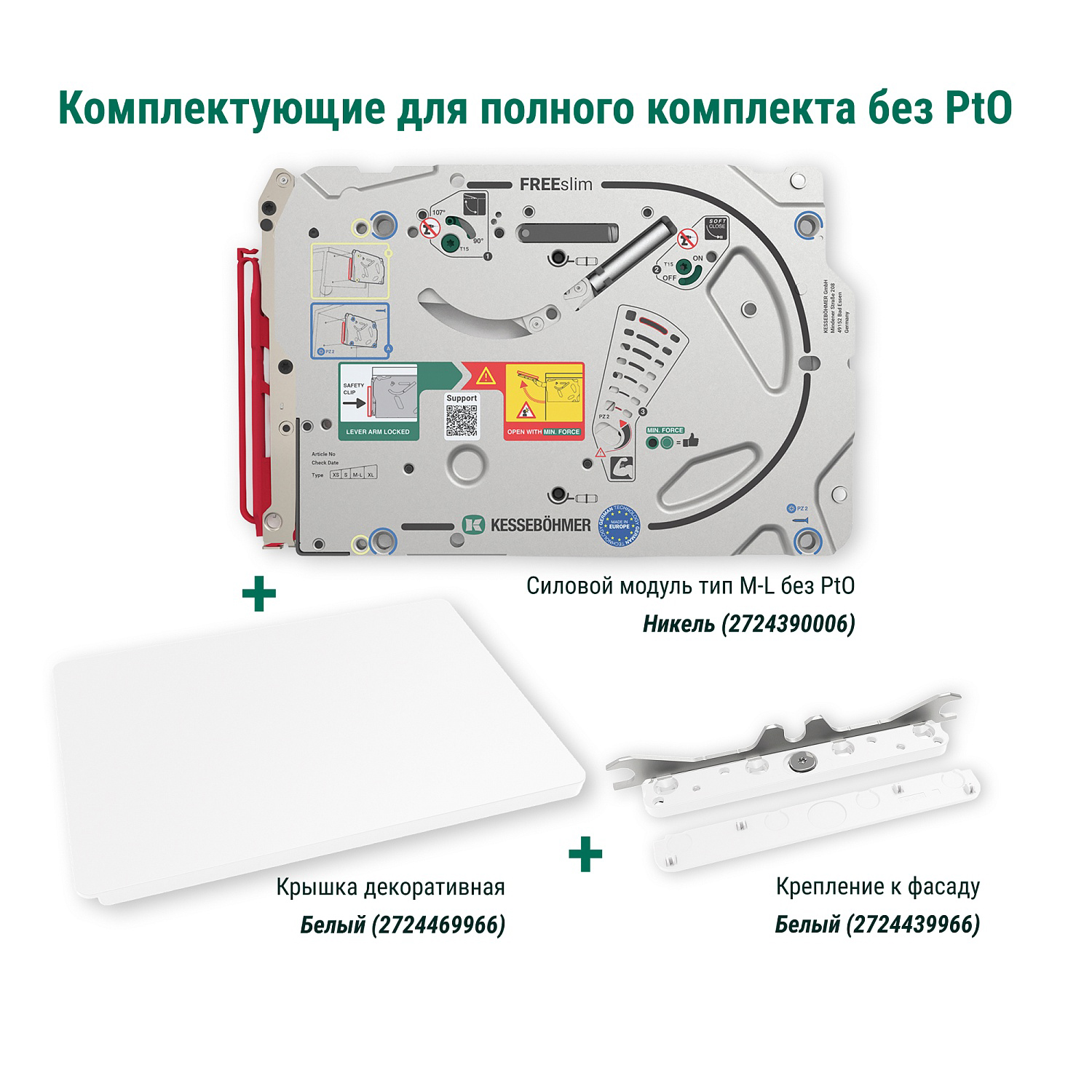 Силовой модуль тип M-L левый и правый, к подъемнику ФриСлим Флап, H 225-650, 2 шт + 4 установочных штифта, 8 шурупов 4х20 мм, цвет НИКЕЛЬ (2724390006)