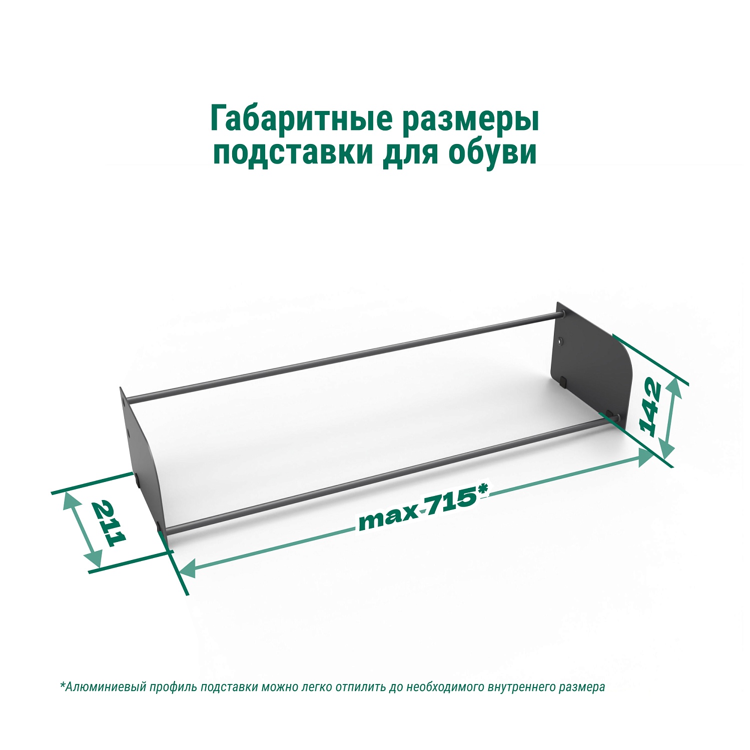Алюминиевый профиль подставки можно легко укоротить до необходимого внутреннего размера.