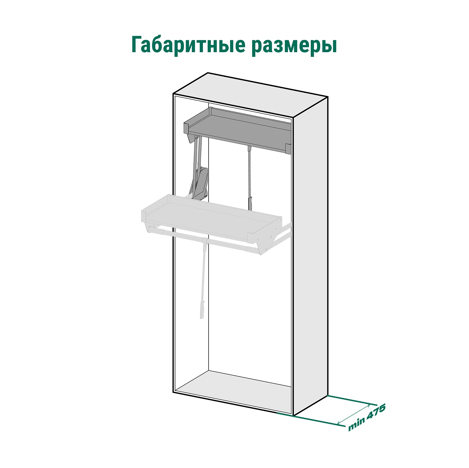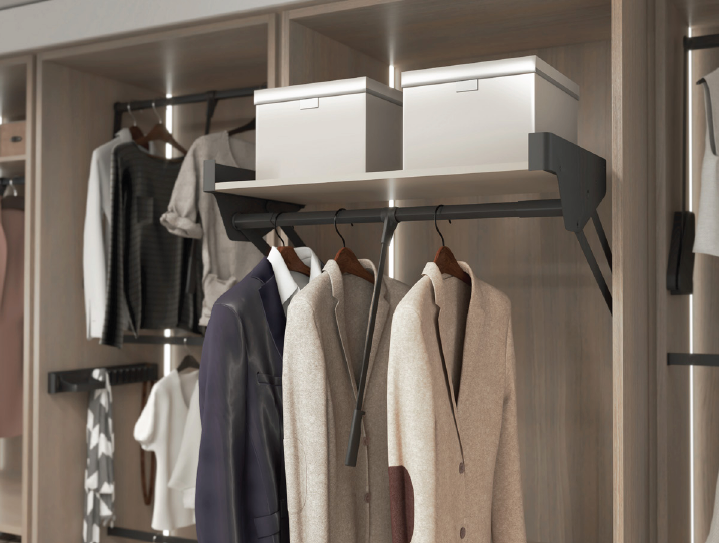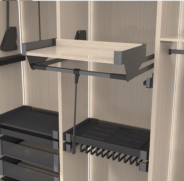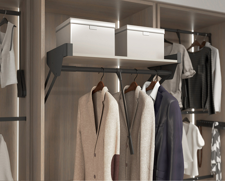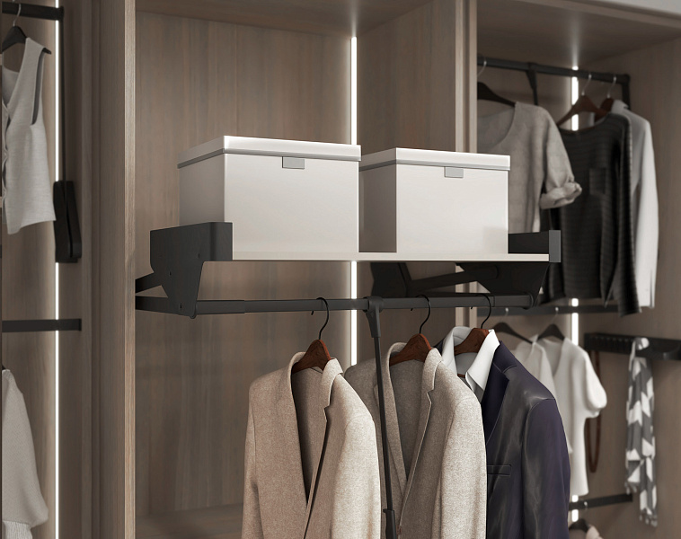 Пантограф с полкой в гардеробную Конеро W 625-808 мм цвет ЧЕРНЫЙ Kessebohmer | официальный магазин
