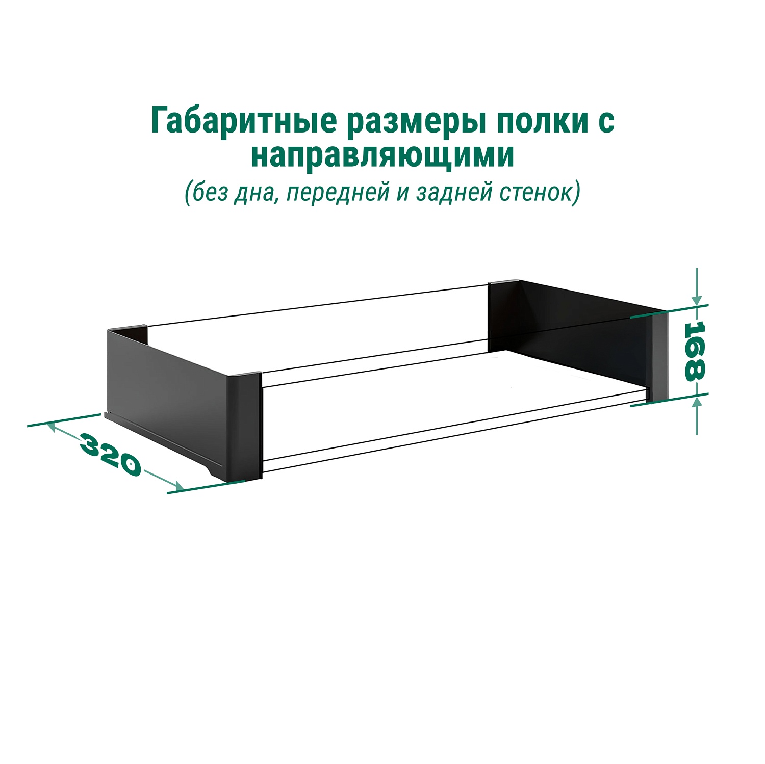 Conero Полка внутренняя выдвижная 320 мм, Конеро, H 168, без дна, передней и задней стенок, 1 шт