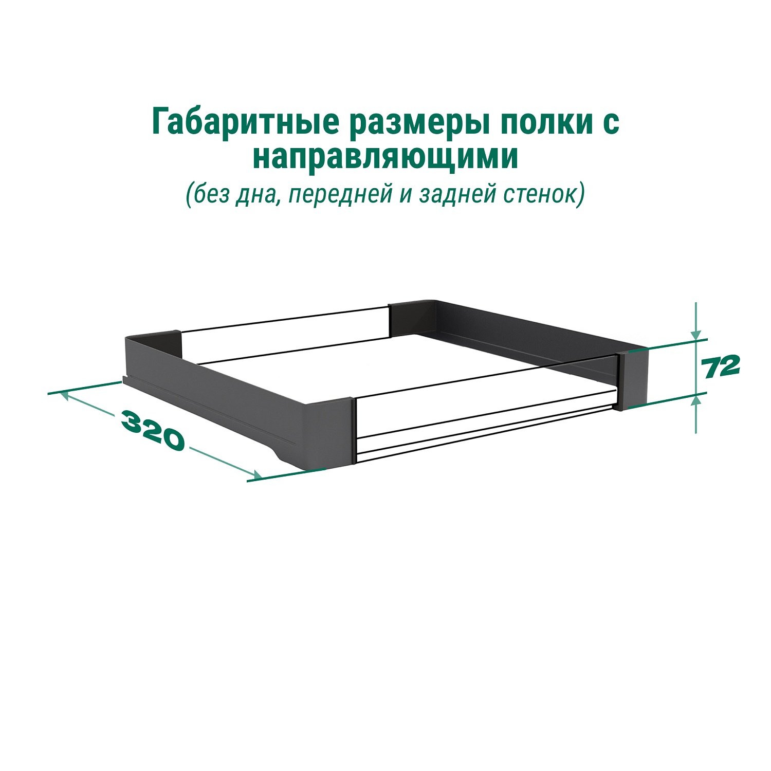 Conero Полка внутренняя выдвижная 320 мм, Конеро, H 72, без дна, передней и задней стенок, 1 шт