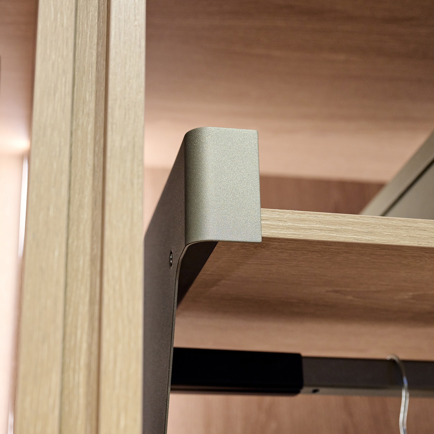 Модный и актуальный цвет шампань представлен как металлическое покрытие элементов системы (направляющих, рам, штанг) и сочетается с другими компонентами гардеробной в единой эстетике.